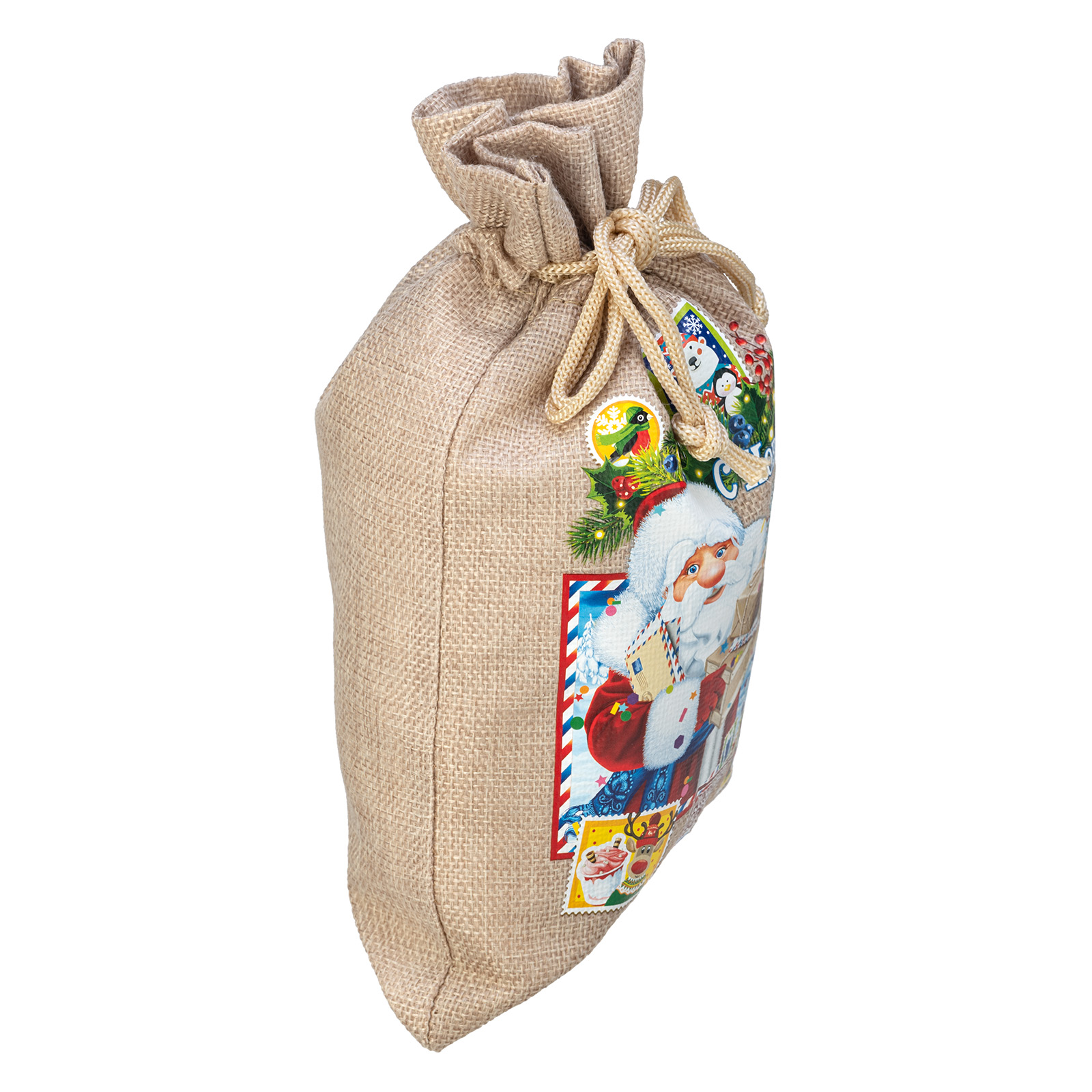 Интересный вариант новогоднего подарка – « Мешок Морозное утро». Отлично подойдет на подарок в 2026 году с символом Лошадь. Внутри такого презента находится кондитерский набор весом 500 граммов.