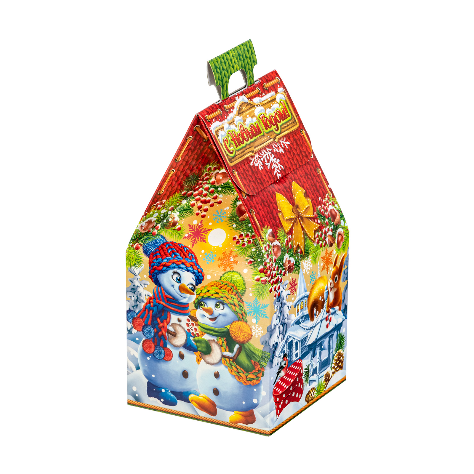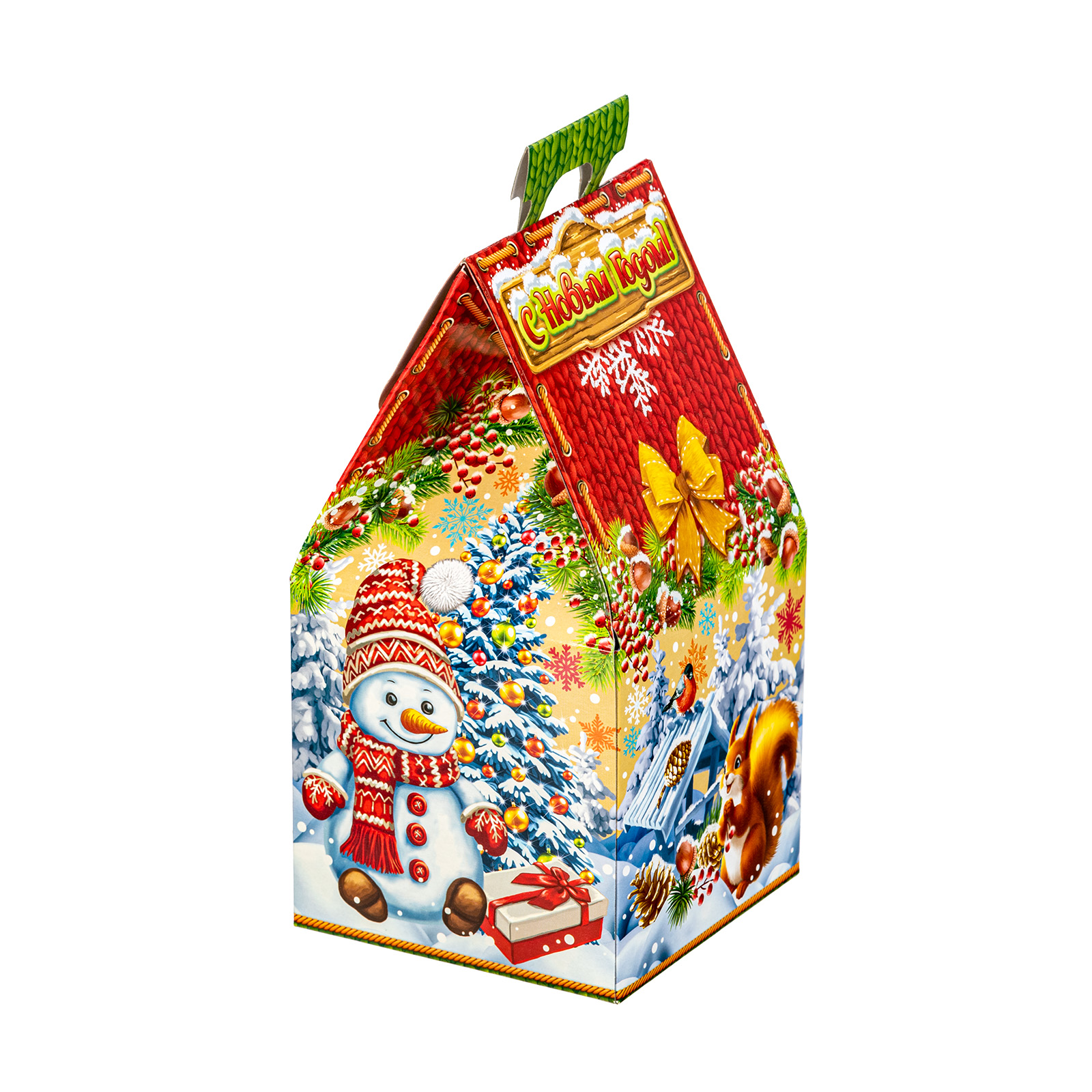 Новогодний сладкий подарок должен обладать не только потрясающим вкусом, но и яркой оригинальной упаковкой, которую поскорее хотелось бы раскрыть! Подарочный набор “Лесная полянка” как раз прекрасно сочетает в себе вкусные лакомства и креативный дизайн упаковки. Более 30 вкусных сладостей и небольшой памятный сувенир бережно упакованы в картонную коробочку в форме домика. Коробка со всех сторон оформлена яркими праздничными иллюстрациями, на которых лесные обитатели и семья снеговиков уже во всю готовятся встречать светлый праздник. Самое время и вам собрать за столом всю семью и угостить их крепким чаем с вкусными сладостями из этого подарка!