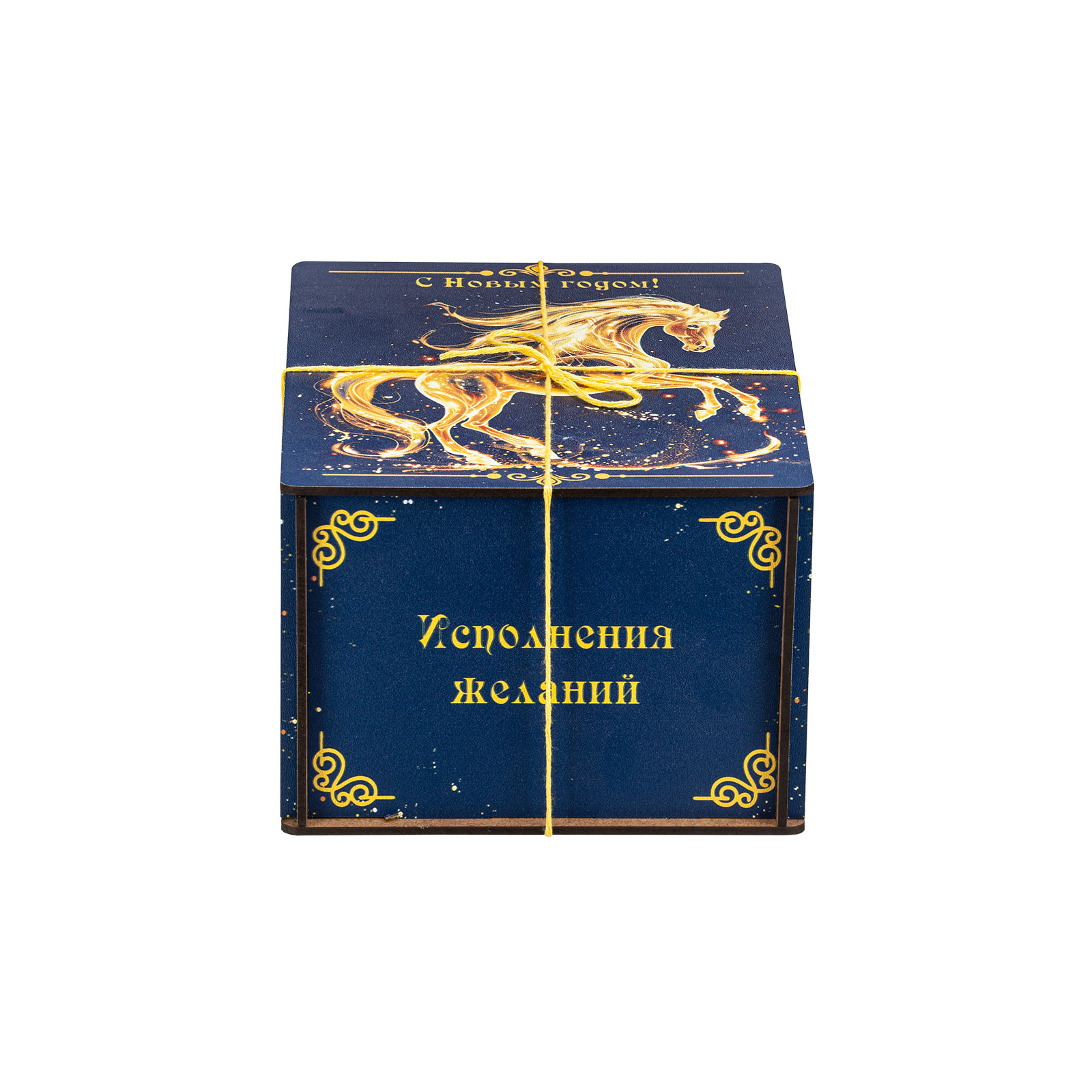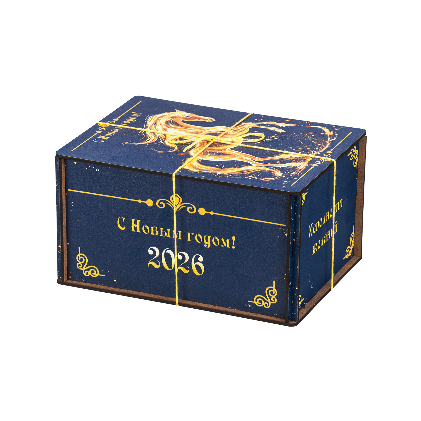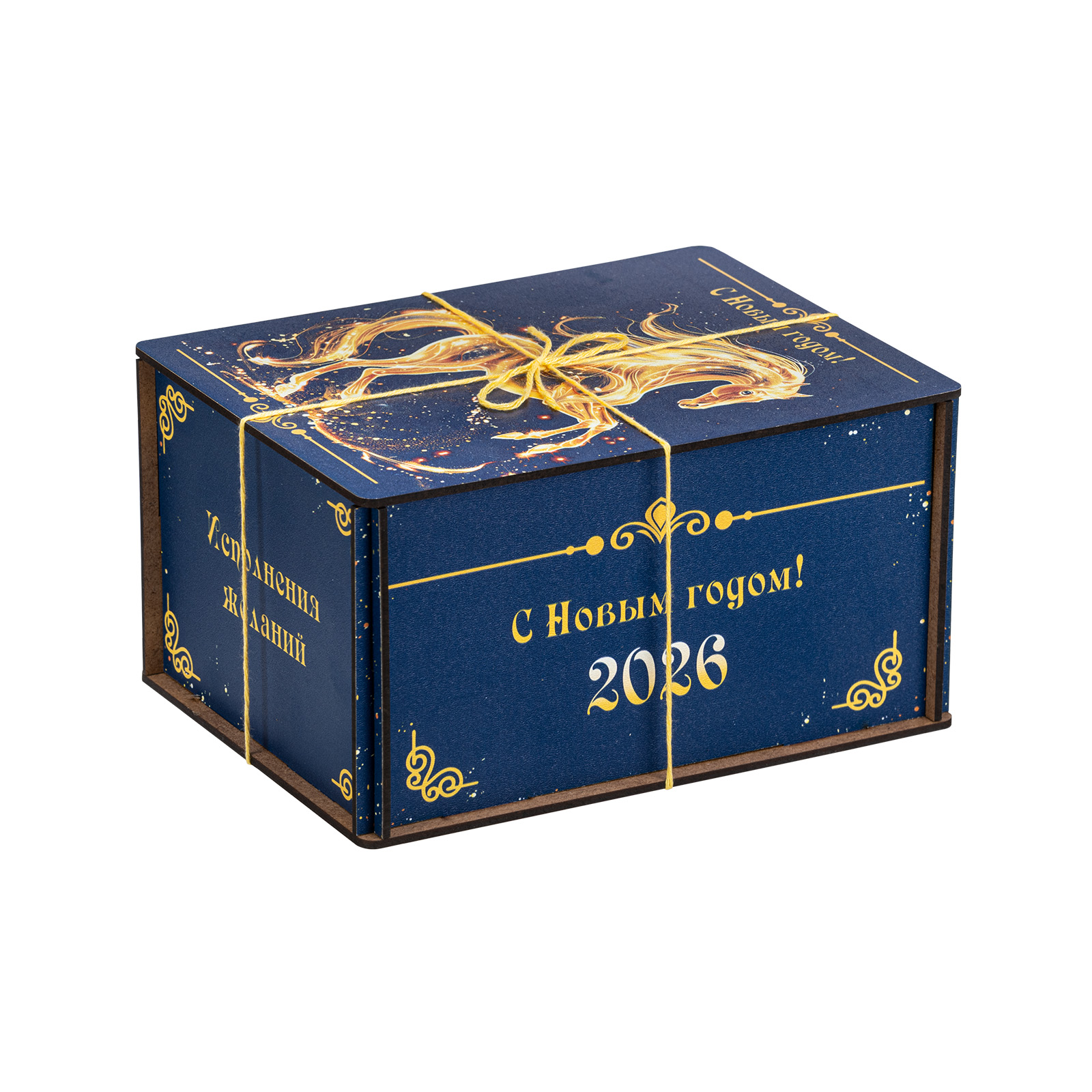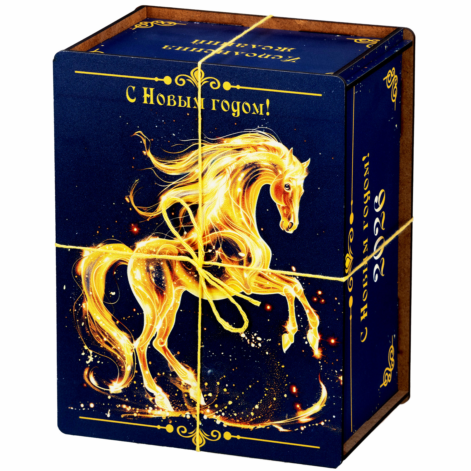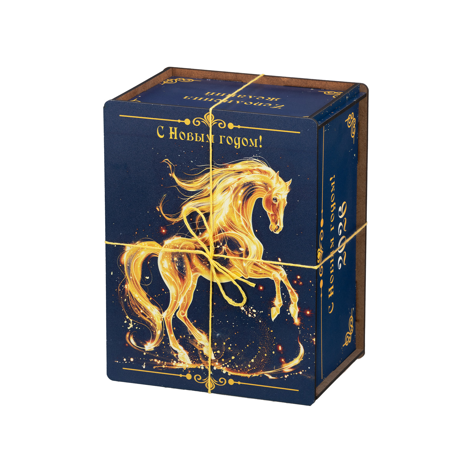 Креативный подарочный набор, который одинаково удачно подойдет как для поздравления подростка, так и для совсем взрослого сластены. Этот подарок представляет собой темно-синий деревянный ящичек, перевязанный контрастной золотой веревочкой. Со всех сторон упаковка украшена поздравительными надписями, а на крышке гордо красуется изображение символа наступающего года - грациозного золотистого коня. В состав подарка входит килограмм самых разнообразных сладостей: батончики, суфле, шоколадные конфеты с начинками на любой вкус - а также небольшой памятный сувенир в виде символа года. Этот подарок можно вручить как на новогоднем мероприятии в школе, так и на корпоративе в крупной компании. Такой презент уж точно придется по душе!