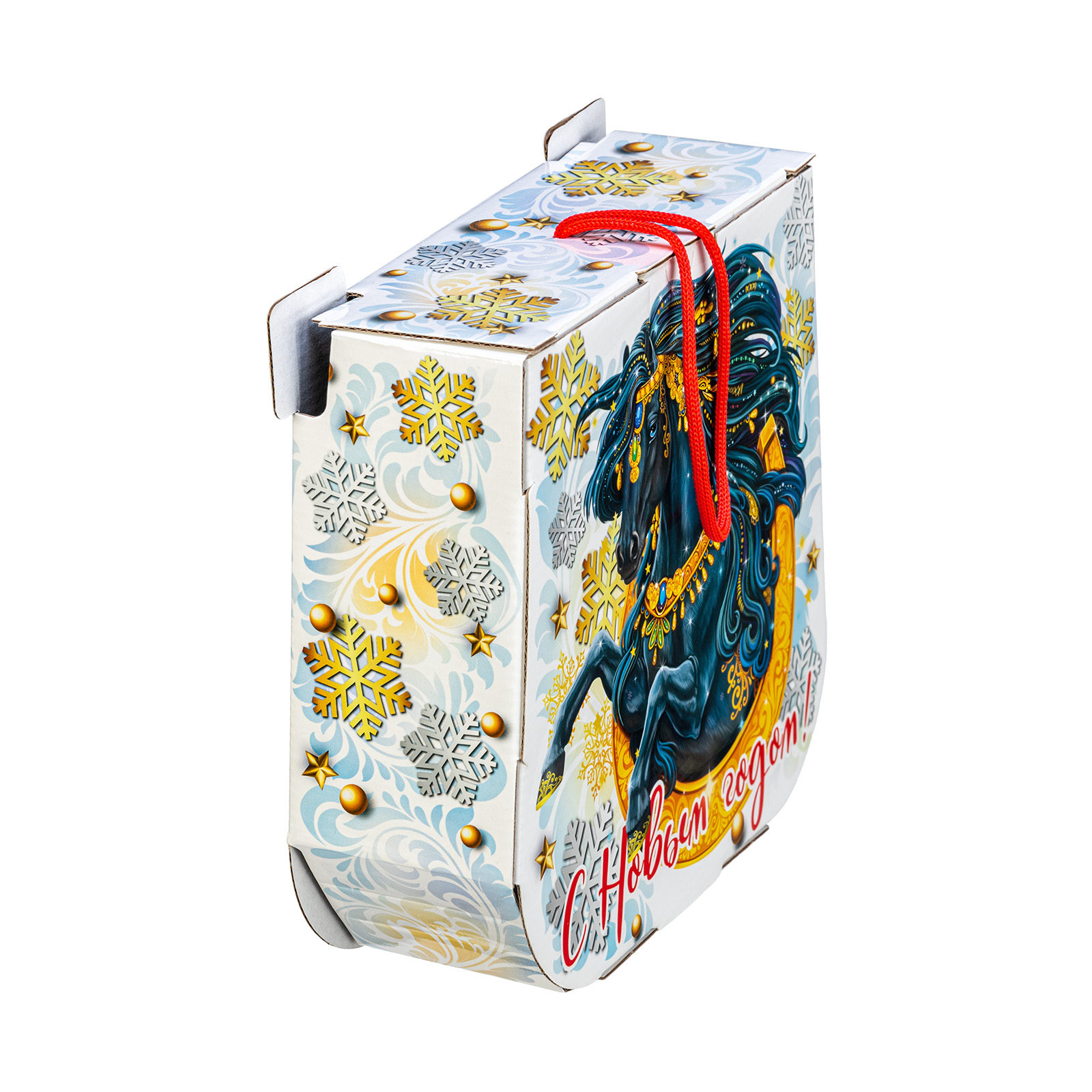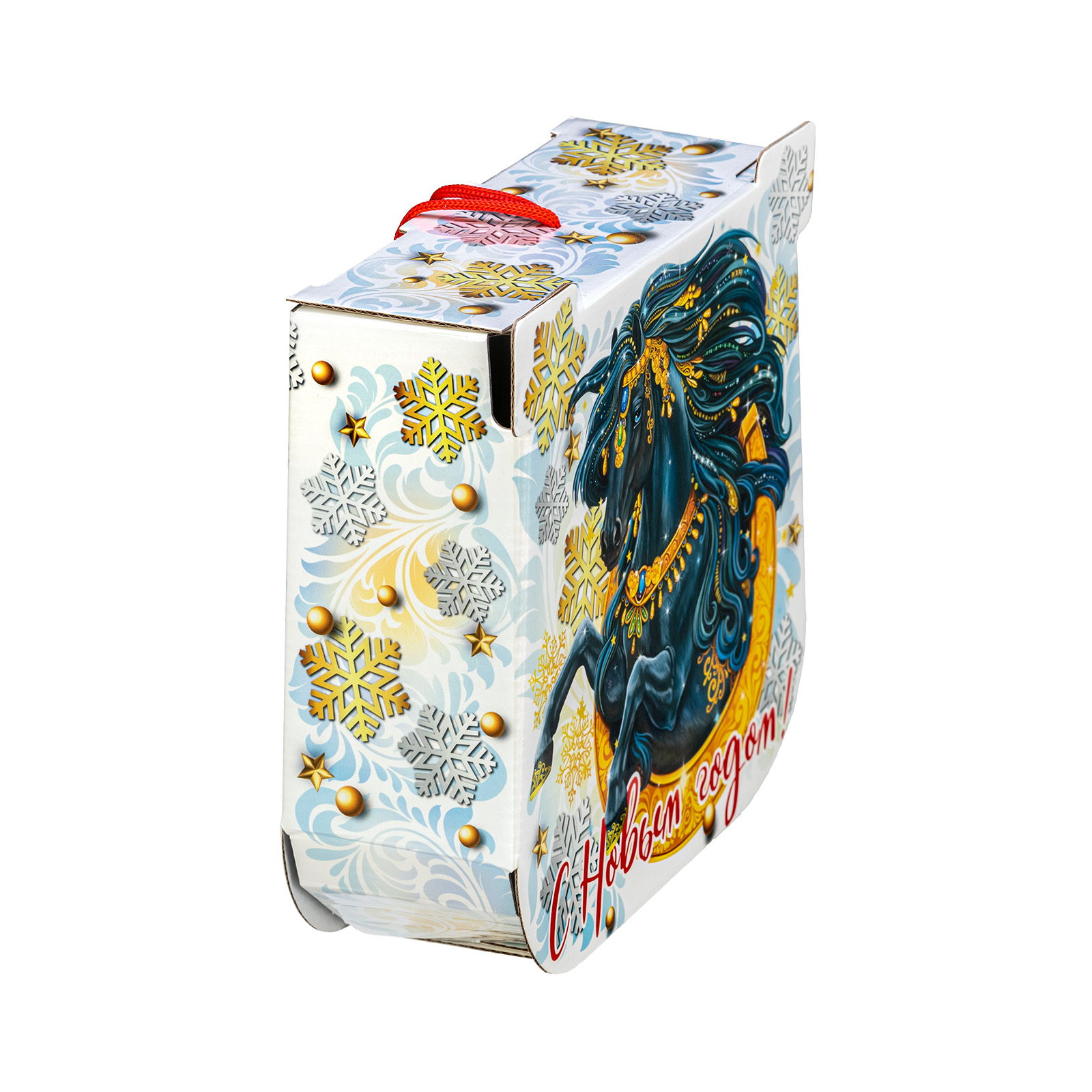 Как при помощи новогоднего подарка создать праздничное настроение на все 12 месяцев? Все просто - нужно подарить сладкий набор с изображением символа наступающего года. Немногие знают, но подкова с древних времен считается символом удачи - не просто так ведь именно ее в древности вешали при входе в дом. Данный подарочный набор повесить не получится, но вот зарядиться теплыми эмоциями от вкусных сладостей можно без труда! За счет оригинального оформления и вкусного сладкого наполнения, такой презент можно смело вручить сластене абсолютно любого возраста! Неповторимый вкус отборных сладостей и яркий дизайн упаковки никого не оставят равнодушным!