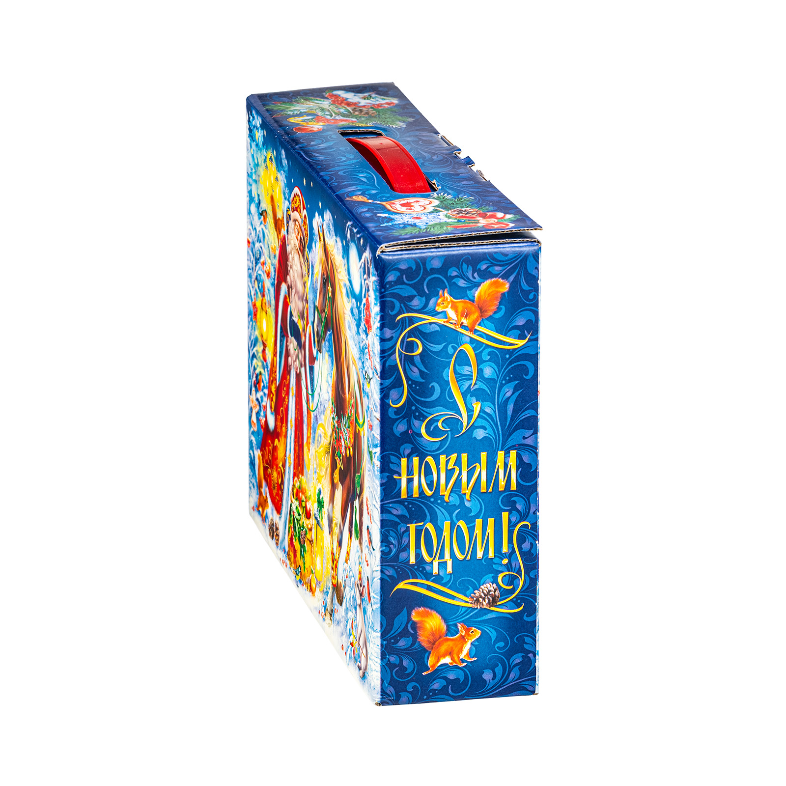 Сладкий новогодний подарок в виде домика – «Полярная сказка», высотой 20 см. На упаковке этого замечательного подарка изображены полярный медведи – мама медведица в розовом шарфе и сын медвежонок в синем свитере. Она стоят на фоне разноцветного леса над котором изображен фейерверк. Внутри подарка находится разнообразный кондитерский набор весом 700 грамм. Подарок наполнен кондитерскими изделиями известных кондитерских фабрик, которые подойдут на любой вкус. Данный подарок хорошо подойдет для вручения коллегам, друзьям, близким родственникам на долгожданный праздник года. Своим прекрасным дизайном он порадует и поднимет настроение своего получателя.