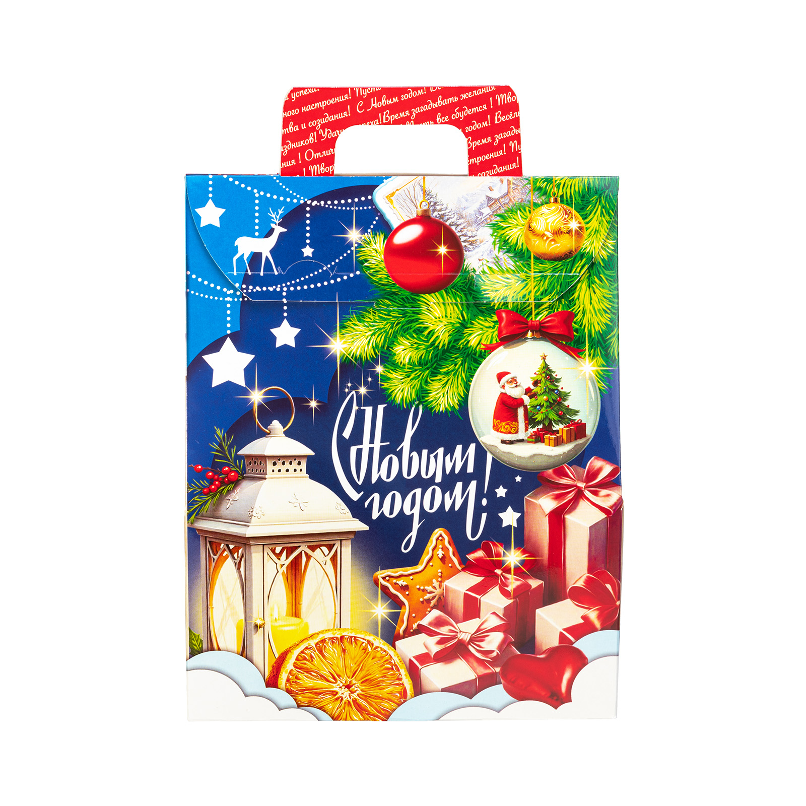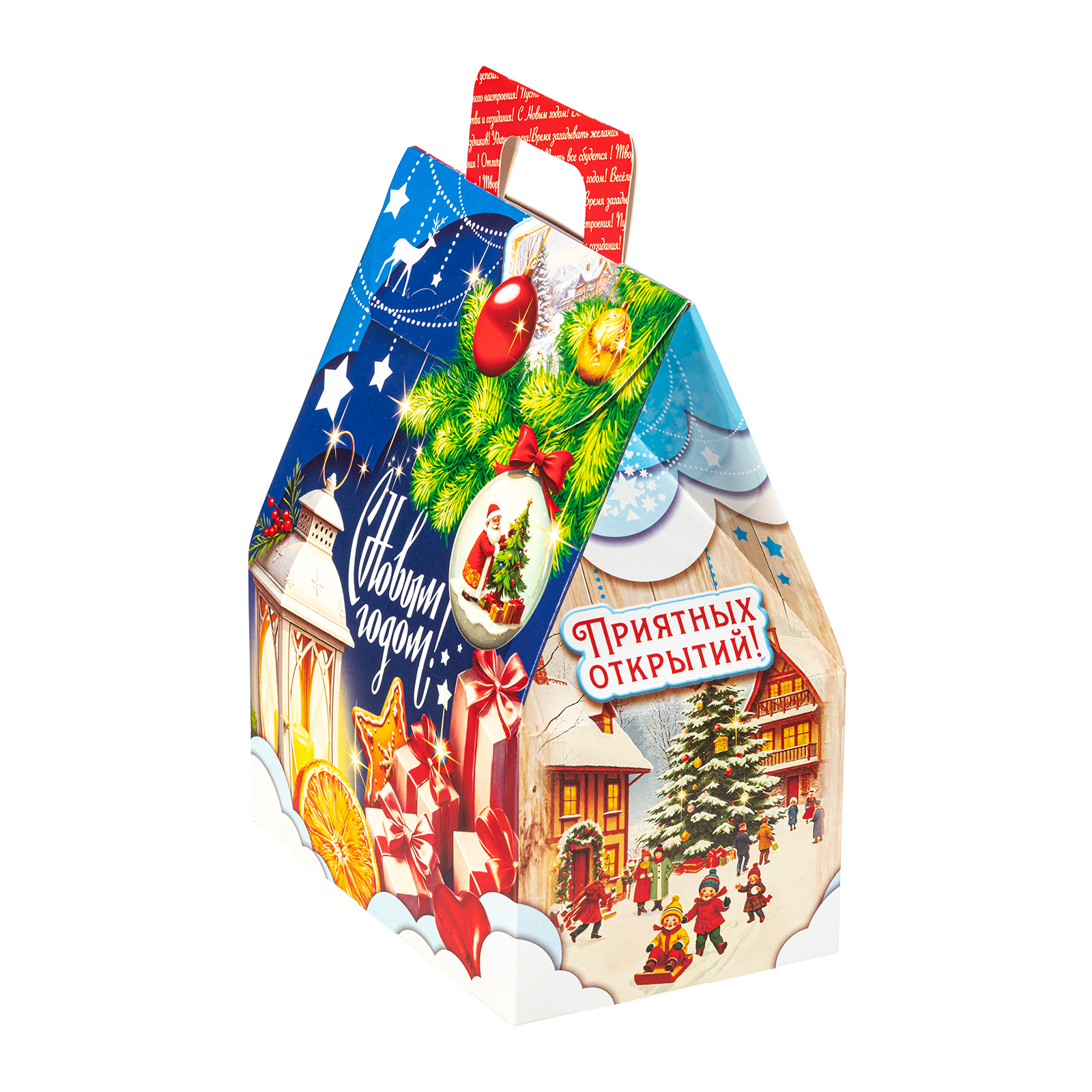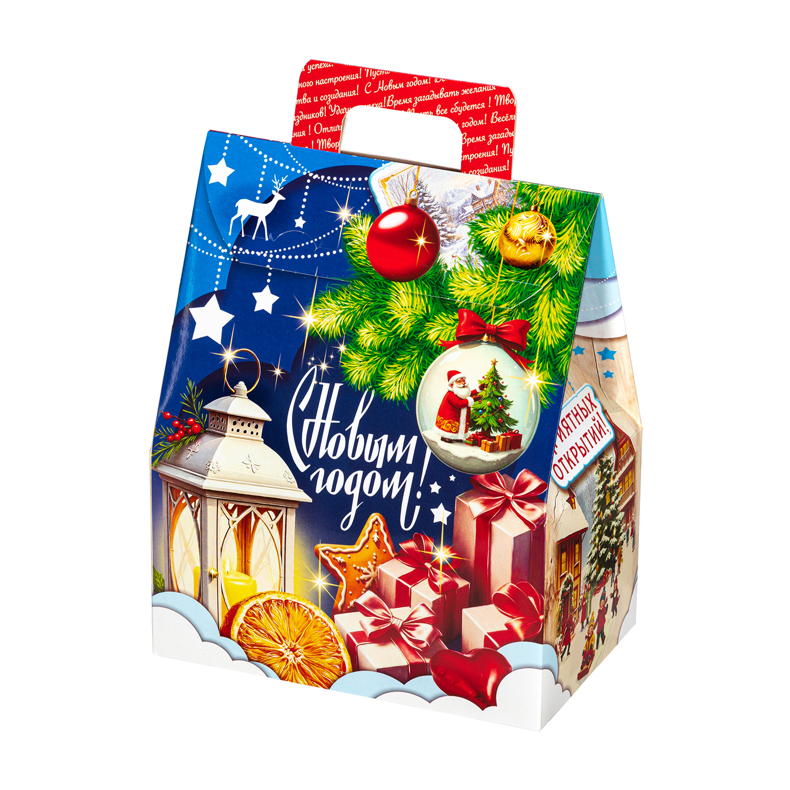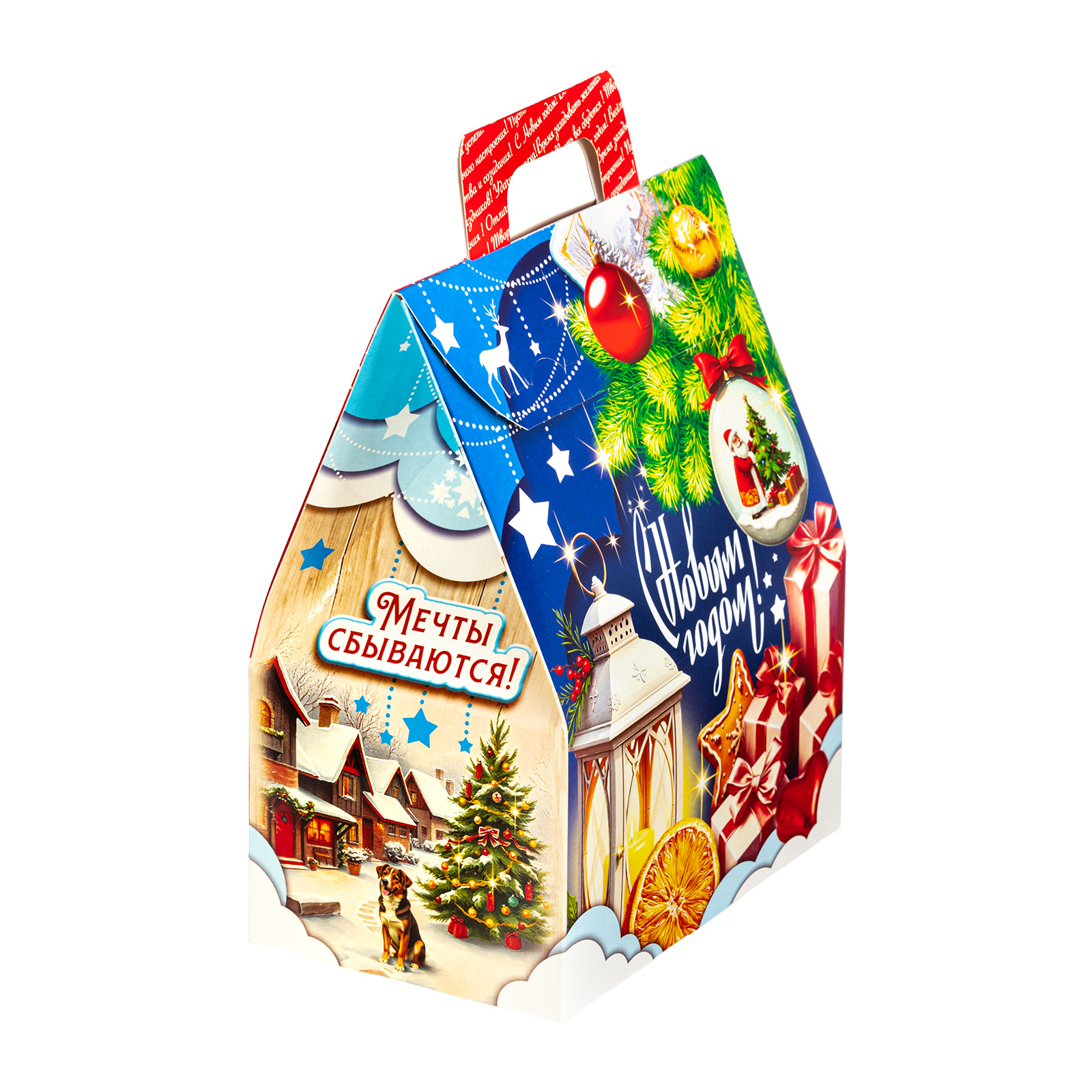 Этот небольшой, но очень привлекательный подарочный набор можно смело вручить как ребенку, так и взрослому. “Заветный подарок” - это небольшая картонная коробочка в форме домика. Со всех сторон упаковка украшена различными праздничными символами: подарки, мандарины, елочные игрушки - все это сразу создает настроение приближающегося праздника. Внутри находятся отборные вкусные сладости под любые предпочтения: желе, батончики, шоколадные конфеты, вафли - каждый найдет лакомство по вкусу.